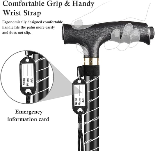 ONEBRAND Walking Stick - Adjustable and Foldable - Lightweight - Comfortable Grip - Durable Walking Aid Mobility Aid - Collapsible Walking Stick.
