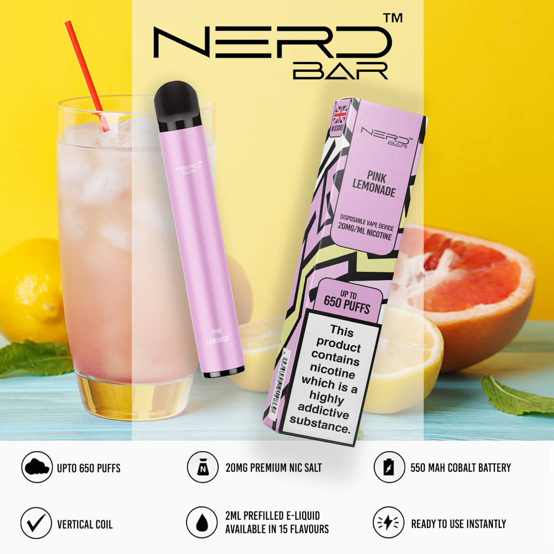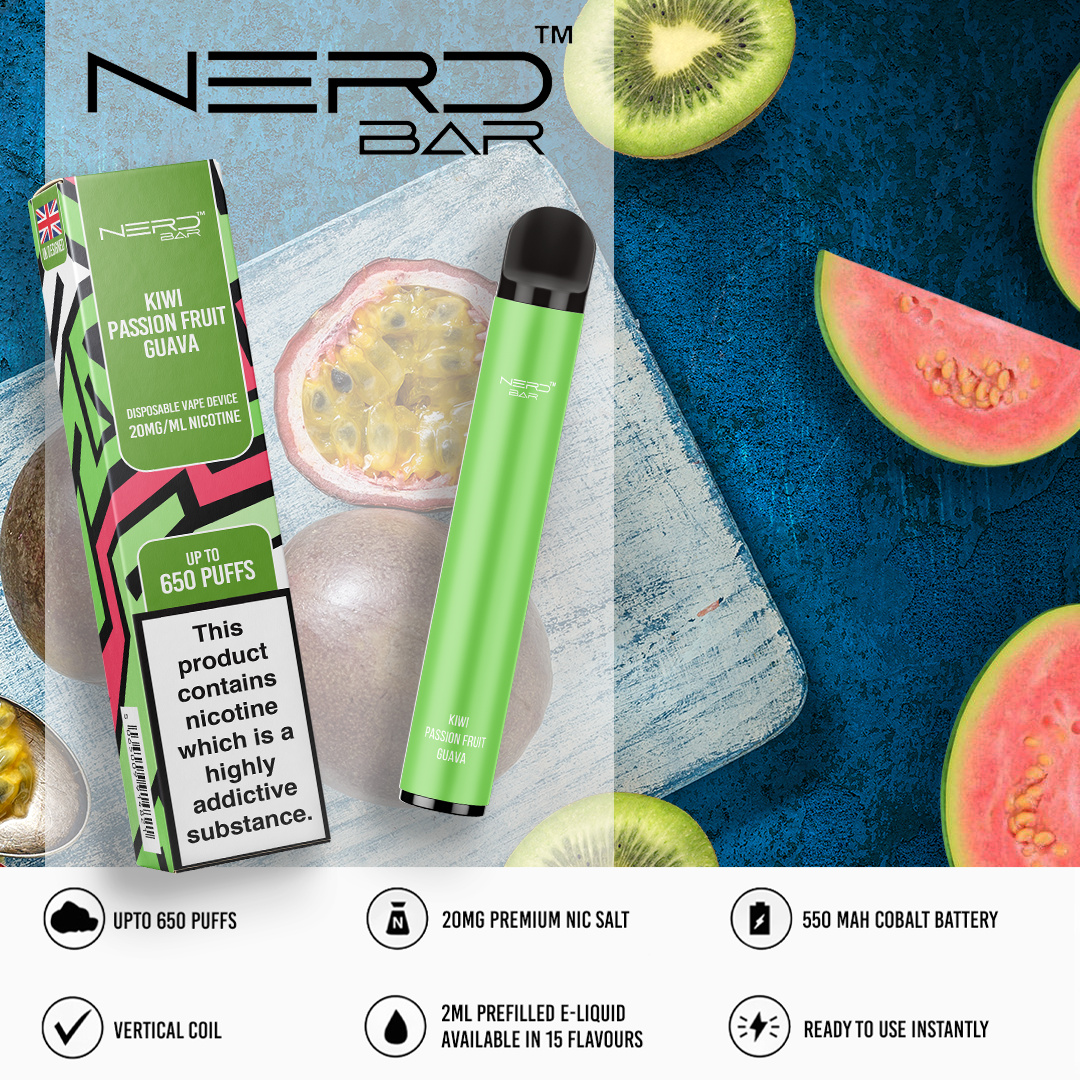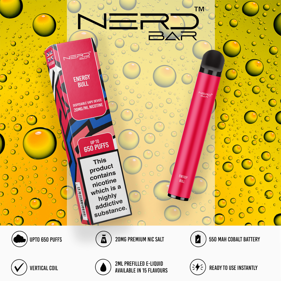Say goodbye to the hassle of your vape device. The NERD BAR 650 comes with 20mg nicotine e-liquid, delivering a satisfying nicotine hit. Choose from a range of delicious flavors and indulge in a delightful vaping experience.
