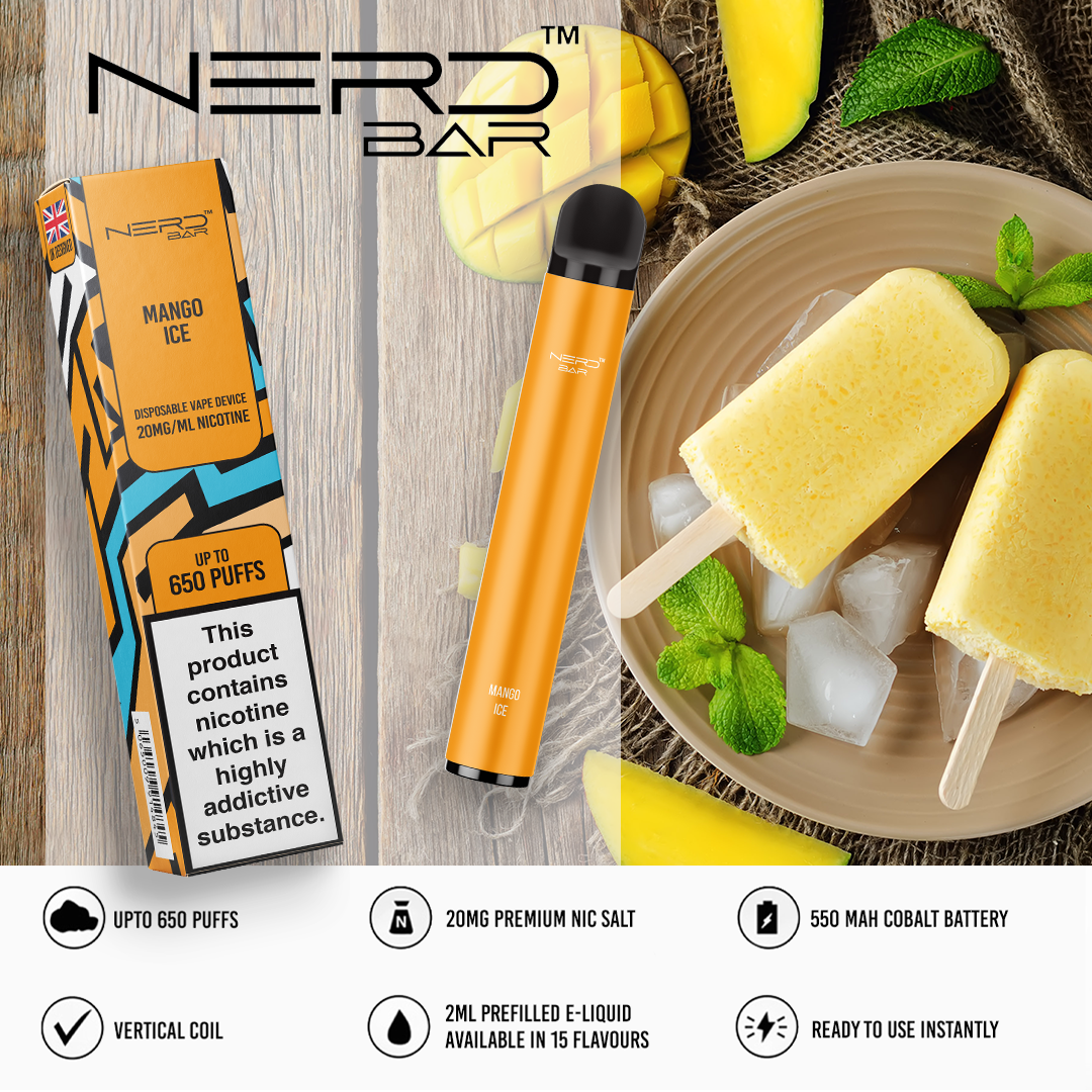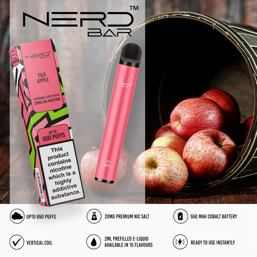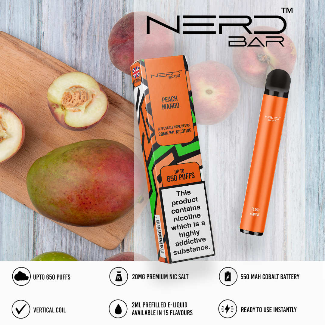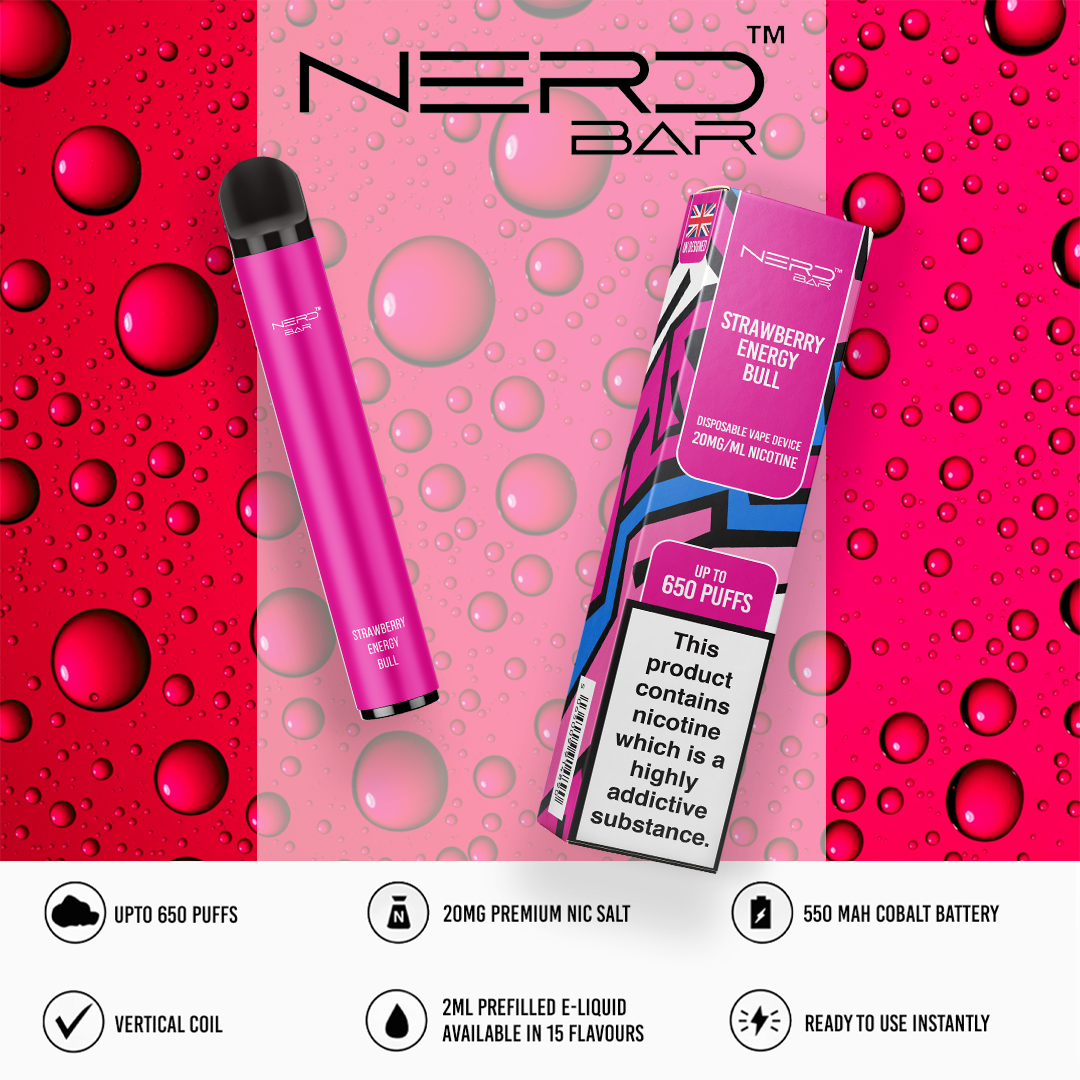 Say goodbye to the hassle of your vape device. The NERD BAR 650 comes with 20mg nicotine e-liquid, delivering a satisfying nicotine hit. Choose from a range of delicious flavors and indulge in a delightful vaping experience.