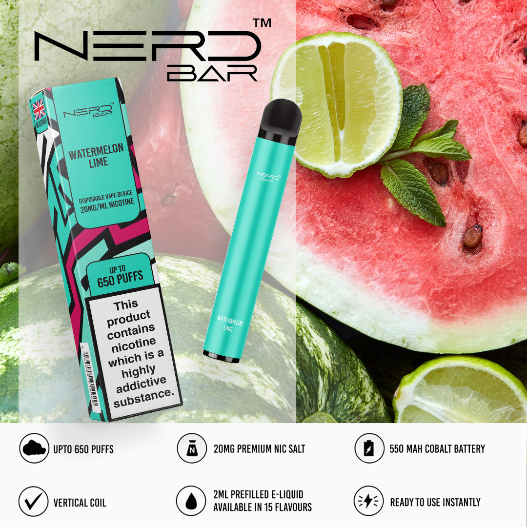 NERD BAR 650 Pen - 20mg Nicotine Strength - 650 Puffs - 550mAh Battery