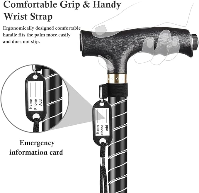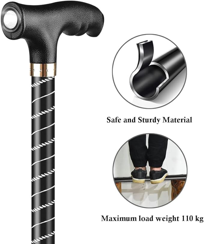 - ◆ Safe and Sturdy Material --- Aluminium walking stick is sturdy and not easy to break.Maximum load weight 110 kg. And walking stick handle is made of PVC,comfortable and shock absorption. Emergency information card included.