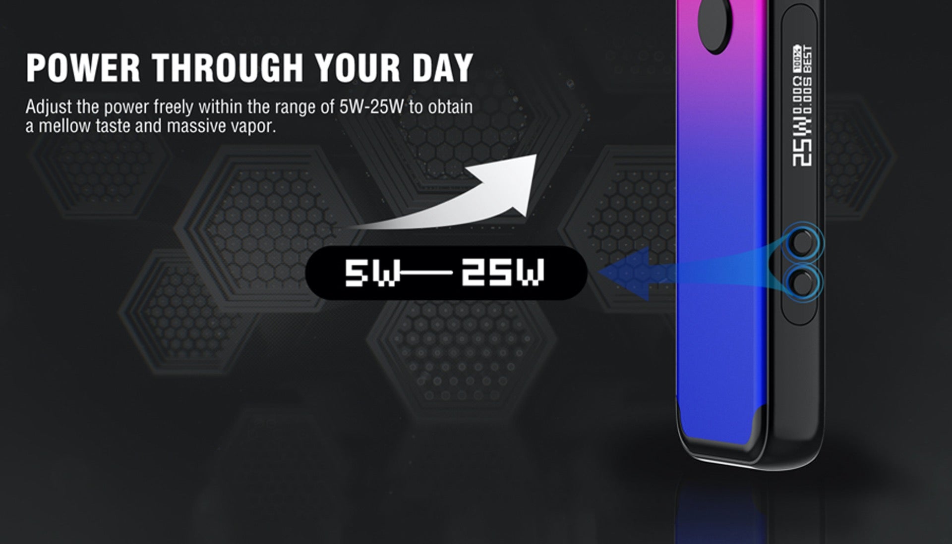 - Variable Output Range: Discover the art of tailoring your vaping experience with the ACRO Kit's adjustable output range, spanning from 5W to 25W.