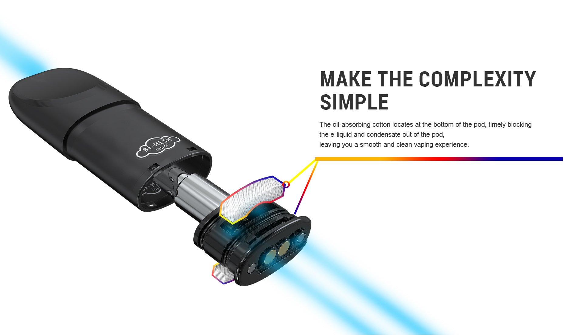 Notice that there is an asymmetrical design in the airway, which controls the amount of the vapor and