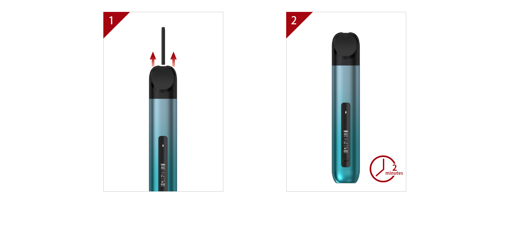 2. Wait for 2 minutes before vaping.
