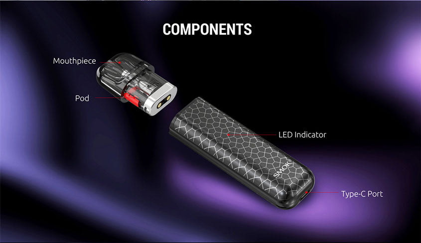 1 x Novo 2S Device, 1 x Novo 2 Clear POds (Meshed 0.9Ohm) (1.8ml), 1 x Type-C Cable, 1 x User Manual |