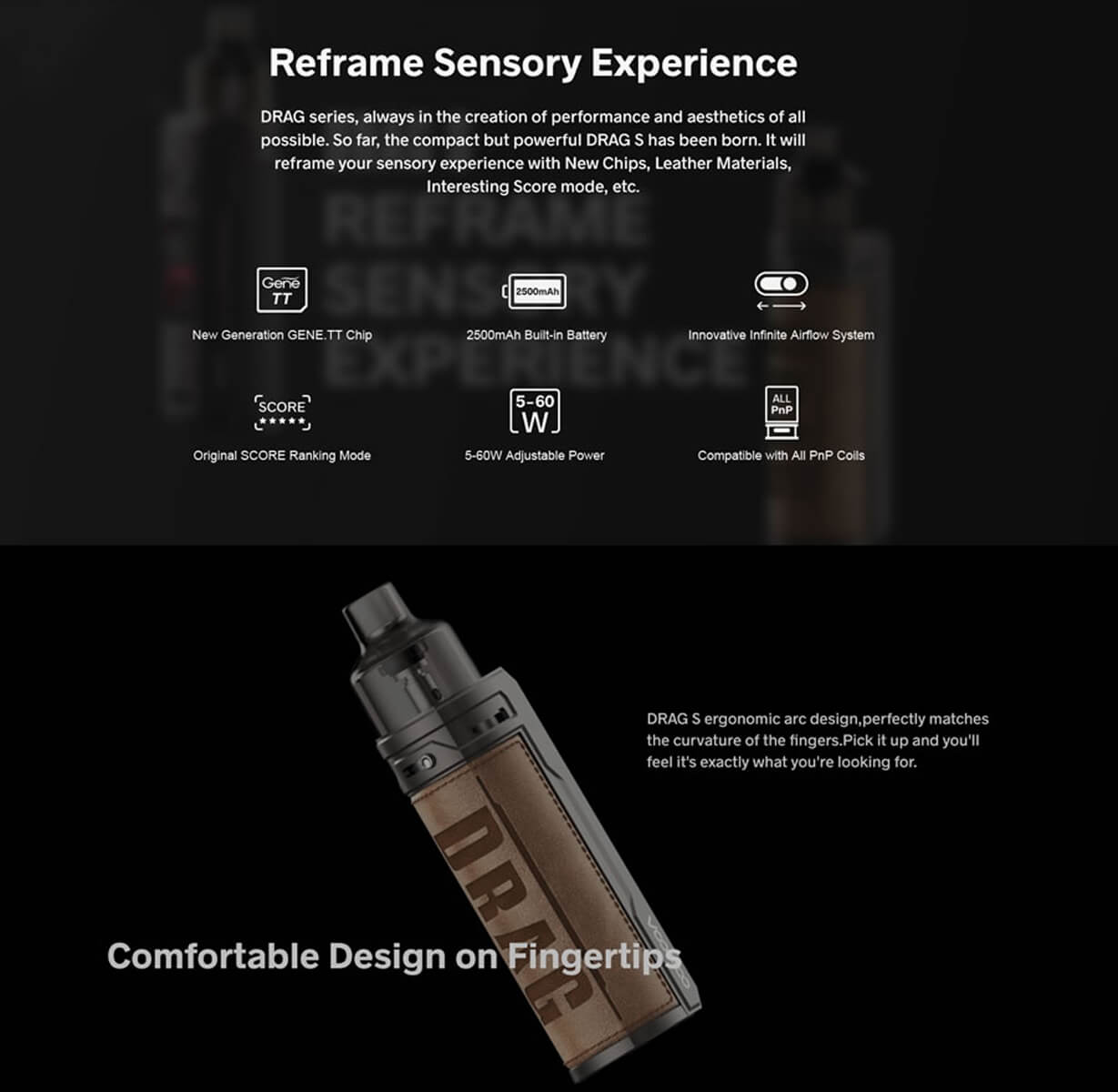 Powered by the advanced Gene.TT chipset, the Drag S offers rapid firing, precise temperature control, and a range of safety features for a reliable and enjoyable vaping experience.