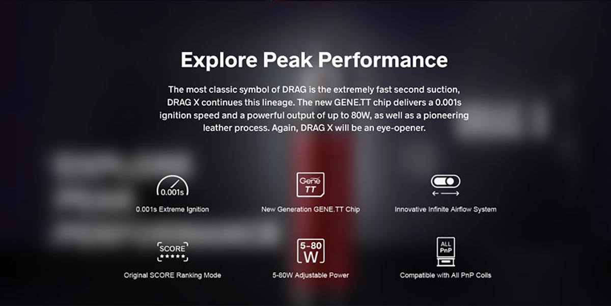 Powered by the advanced Gene.TT chipset, the Drag X offers rapid firing, precise temperature control, and various safety features to enhance your vaping experience.