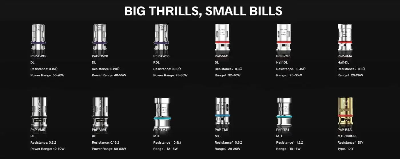 1 x UFORCE-L TANK (2ml), 1 x PnP-TW20 (0.15Ω), 1 x PnP-TW15 (0.15Ω), 1 x Spare Glass Container (2ml), 1 x Silicon Rubber Pack |