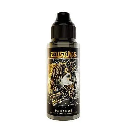 Zeus Juice Pegasus is a tantalising strawberry sherbet fizz, balanced with dark grapes.